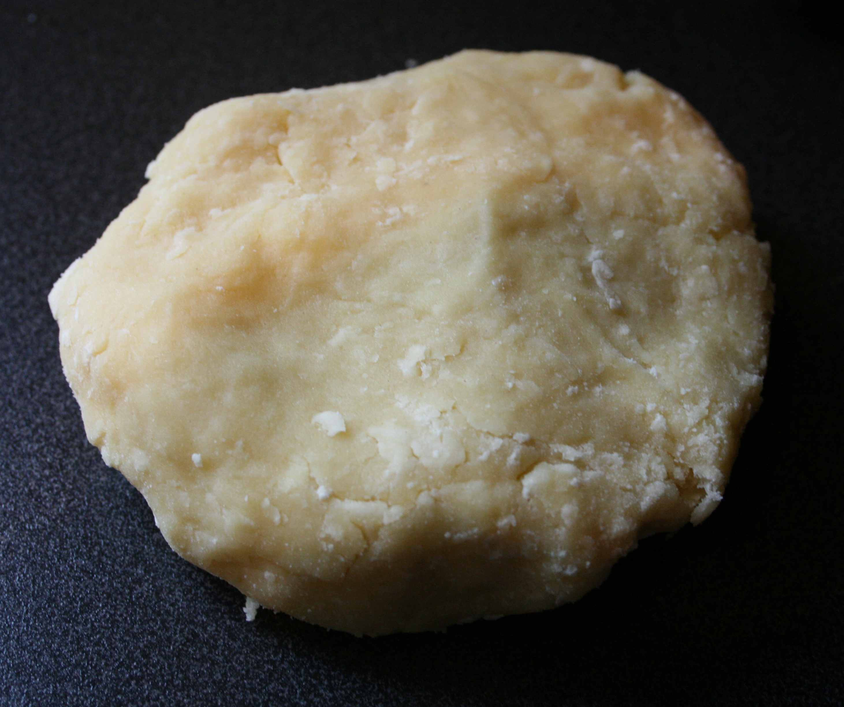 Si besoin, rajouter 2/3 cuillères d’eau . Faire une boule avec la pâte et l’aplatir en disque (ce sera plus facile à étaler).