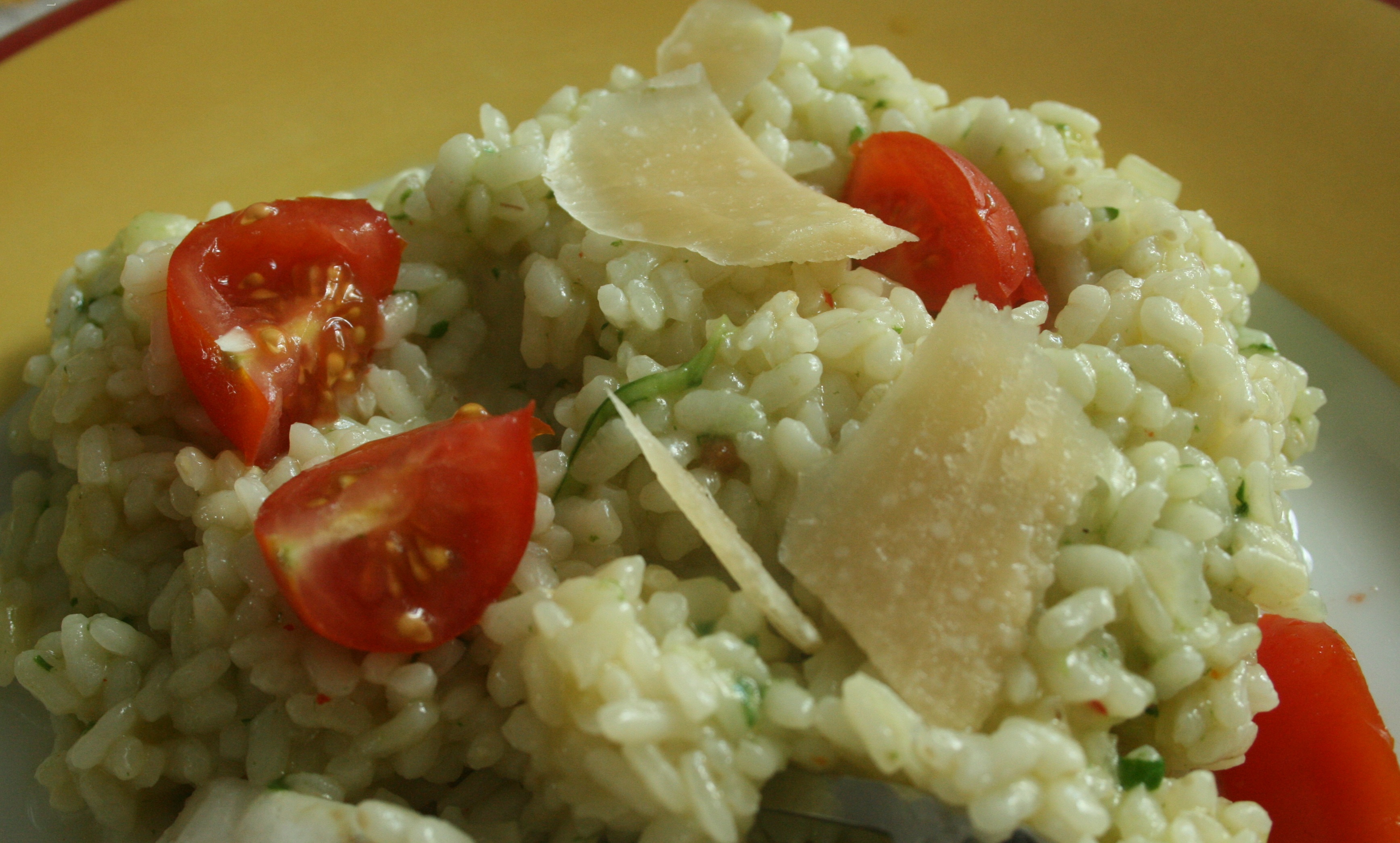 J’aime la roquette crue et cuite : délicieux risotto !!