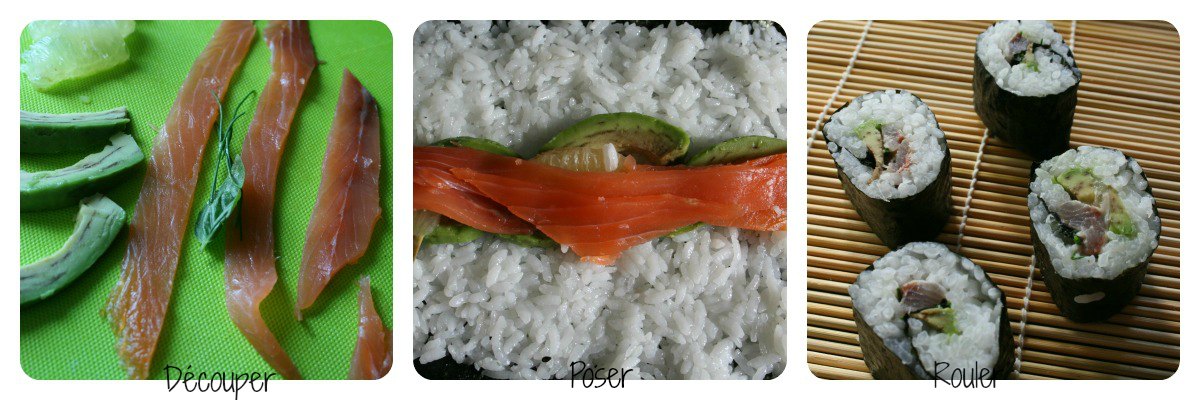 J’ai trouvé quelques vidéos qui expliquent bien la méthode: le riz à sushi, les makis. Les étapes sont bien détaillées sur le blog « un goût de trop peu »