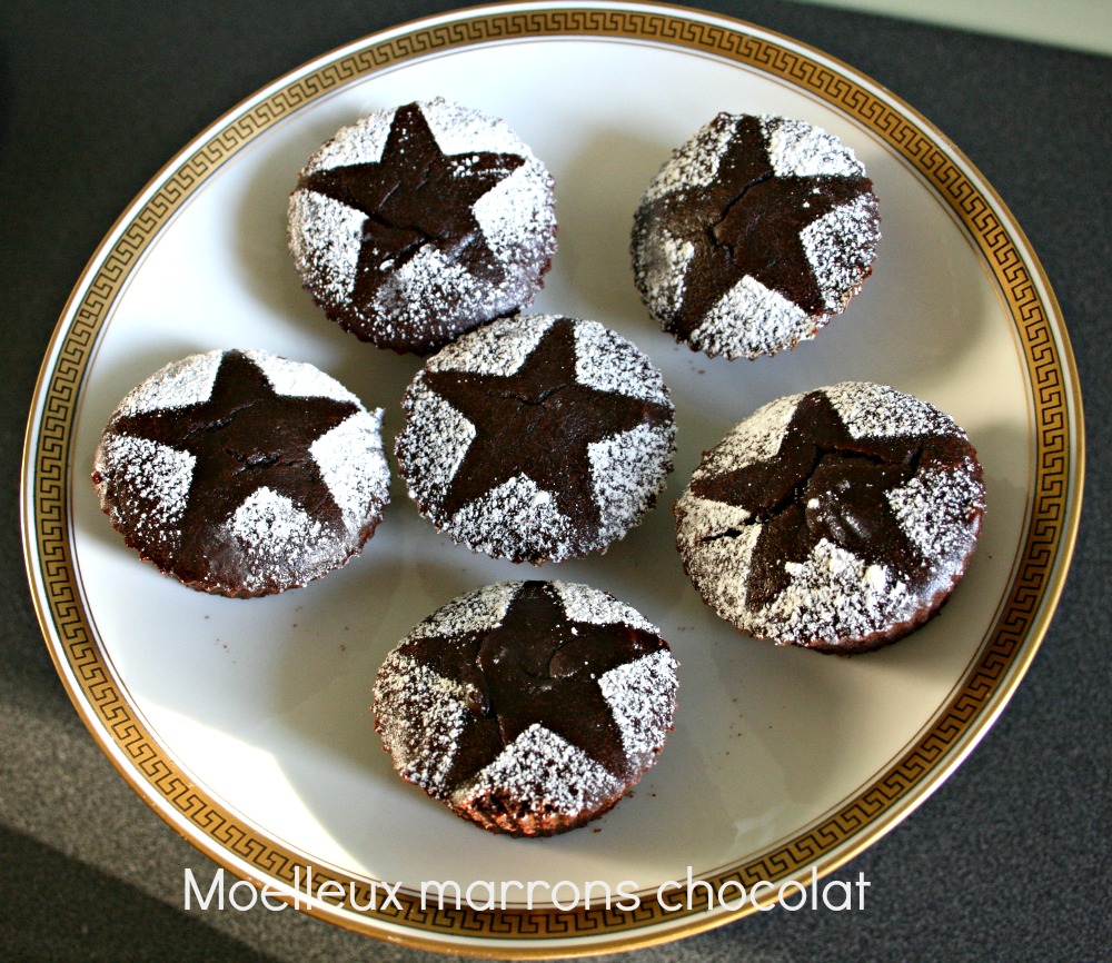 Après le moelleux au chocolat, bon mais déjà vu, le moelleux chocolat ET marrons avec une jolie étoile dessus !Moelleux marrons choco
