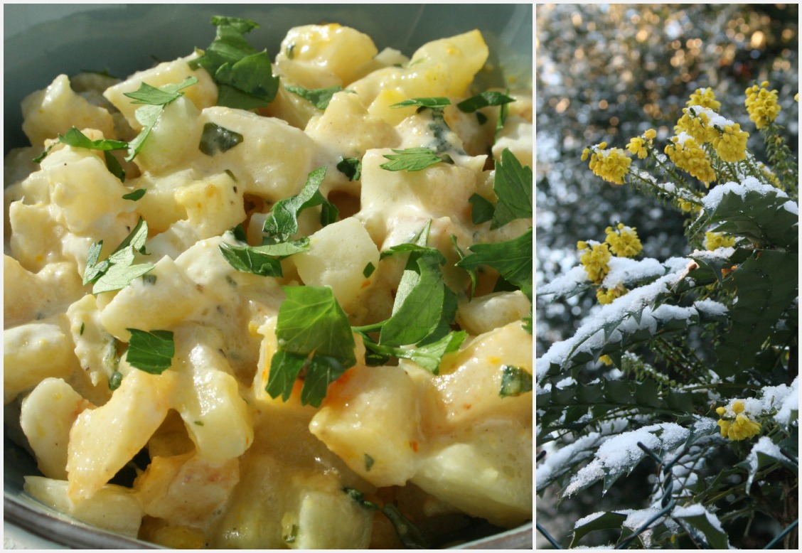 L’idée est bonne, à condition de ne pas s’y prendre comme moi à 20h en rentrant des soldes. Transformer une boule de céleri en grains de riz (enfin disons en petits cubes) ça prend du temps, c’est le prix à payer pour l’originalité. En plus j’étais complètement en harmonie avec les couleurs de mon jardin sous la neige, si c’est pas feng shui ça !!!Celerisotto