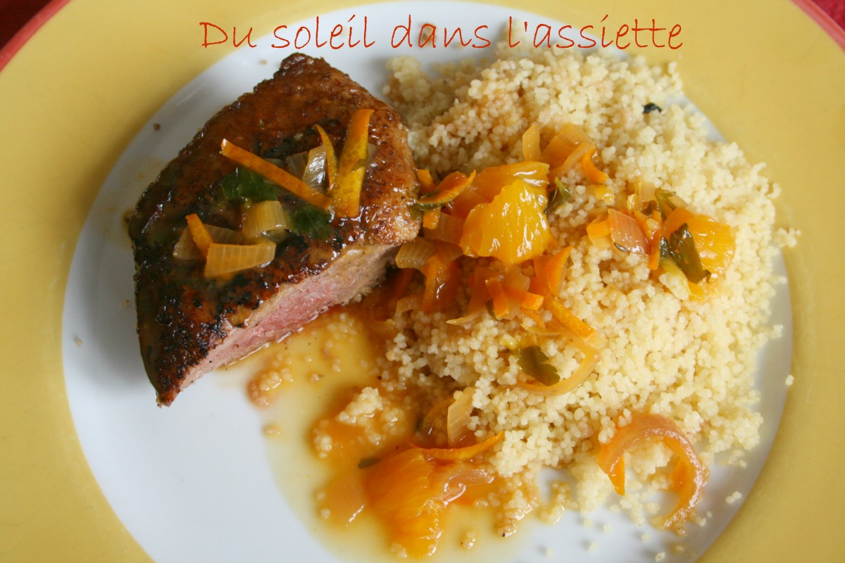 Servir les magrets avec la sauce à part accompagné de riz ou de semoule.magrets oranges