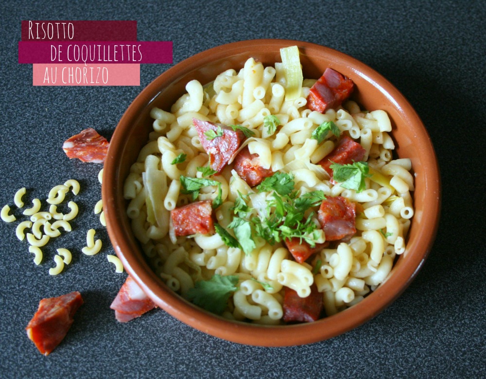 Risotto de coquillettes au chorizo ou comment transformer l’ingrédient typique des soirs de flemme et de frigo vide en un pur moment de plaisir…