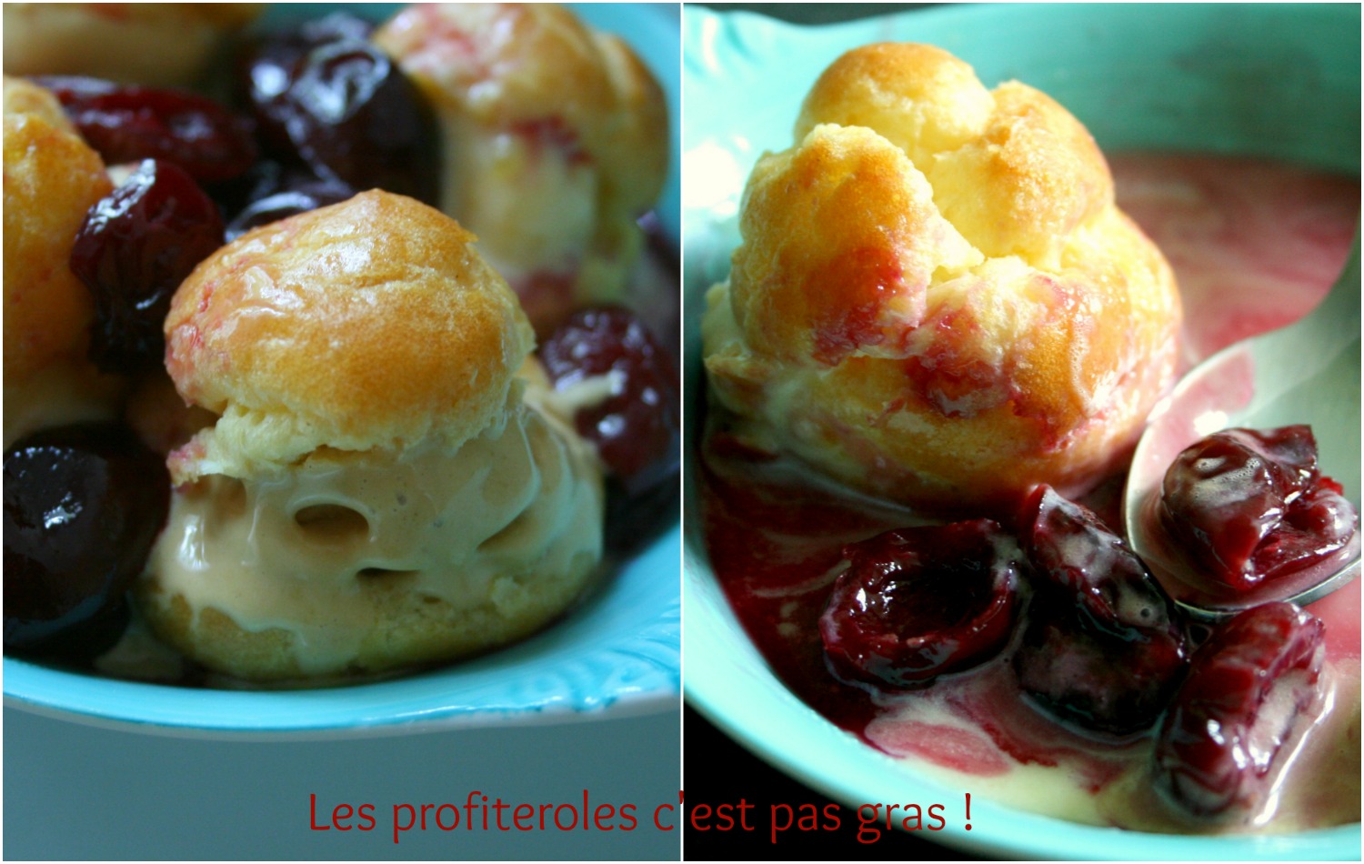 De la glace, des fruits, une version estivale et presque light des profiteroles.Profiteroles cerises
