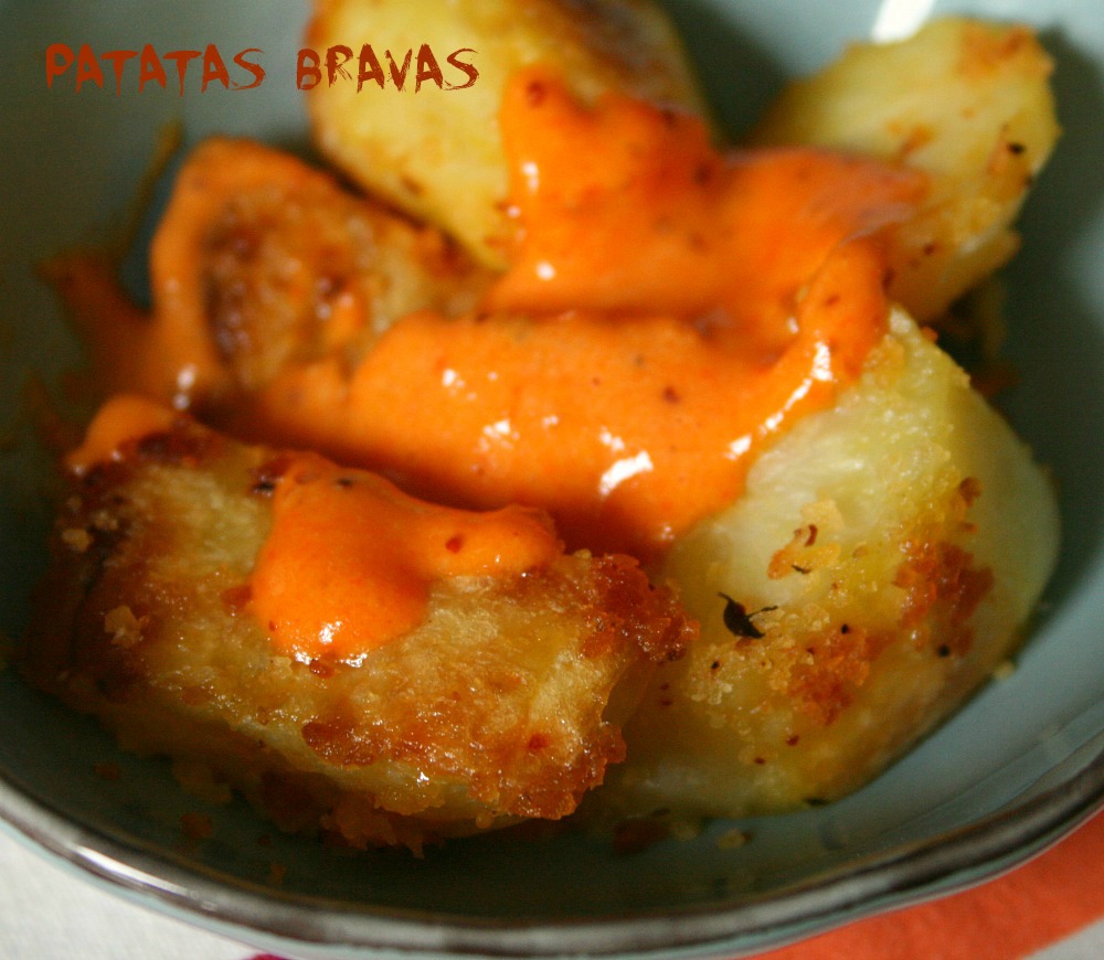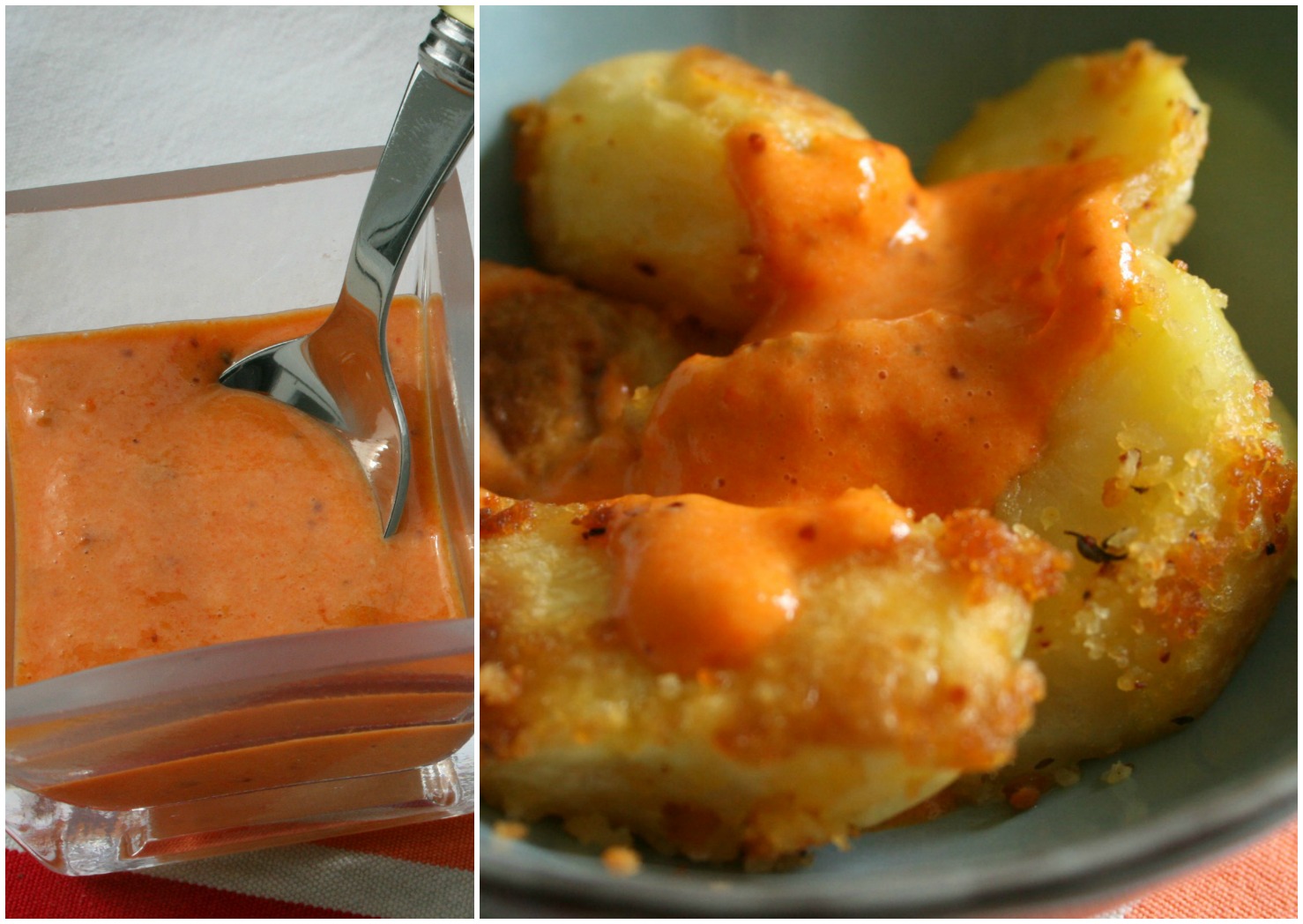 Un classique des tapas espagnoles qui est chez moi un plat unique classique des fins de semaines avec frigo vide. C’est une libre (trrèèès libre) adaptation de la recette espagnole avec des potatoes au four parce que c’est facile, bon et pas trop gras et une sauce piquée chez la Francesa aux fourneaux et adaptée à ce qui reste dans mon frigo.