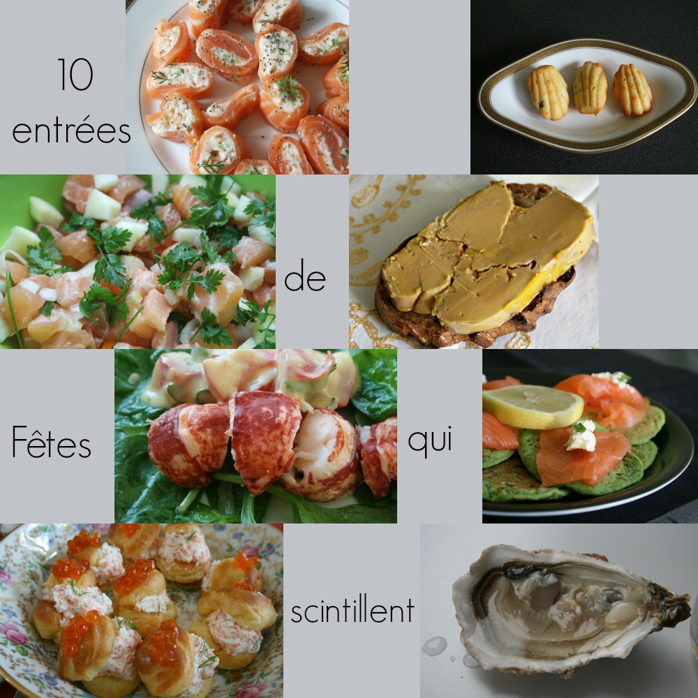 J’ai publié dimanche dernier 10 desserts de fête, c’est ce qui s’appelle commencer par la fin. Voilà aujourd’hui les entrées qui pour certaines – les terrines de foie gras- se préparent dès maintenant. Comme d’habitude, il y en a pour tous les prix, tous les goûts et toutes les compétences culinaires. Je vous laisse de quoi travailler pendant que je vais réveillonner chez maman…