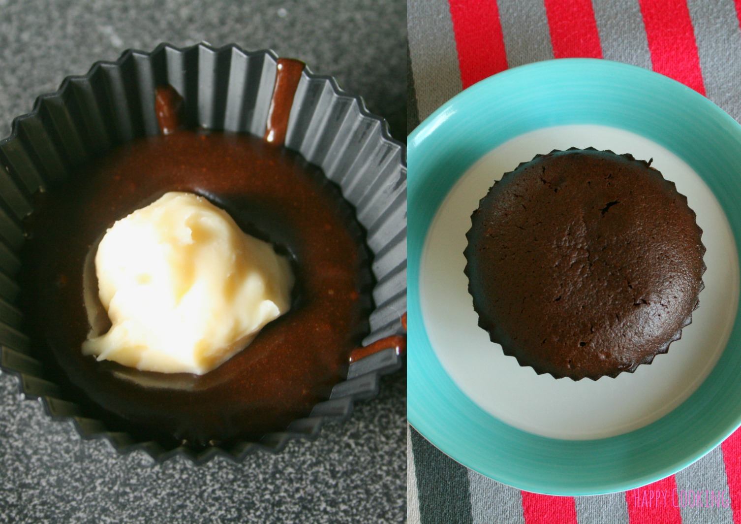 3. J’avais tenté de faire des mi-cuits en mettant un petit carré de chocolat dans la pâte avant la cuisson… Mais avec moi c’est automatique, il tombe au fond et ducoup n’est absolument pas coulant après cuisson ! Je vais tenter de faire comme toi et de le mettre par dessus !