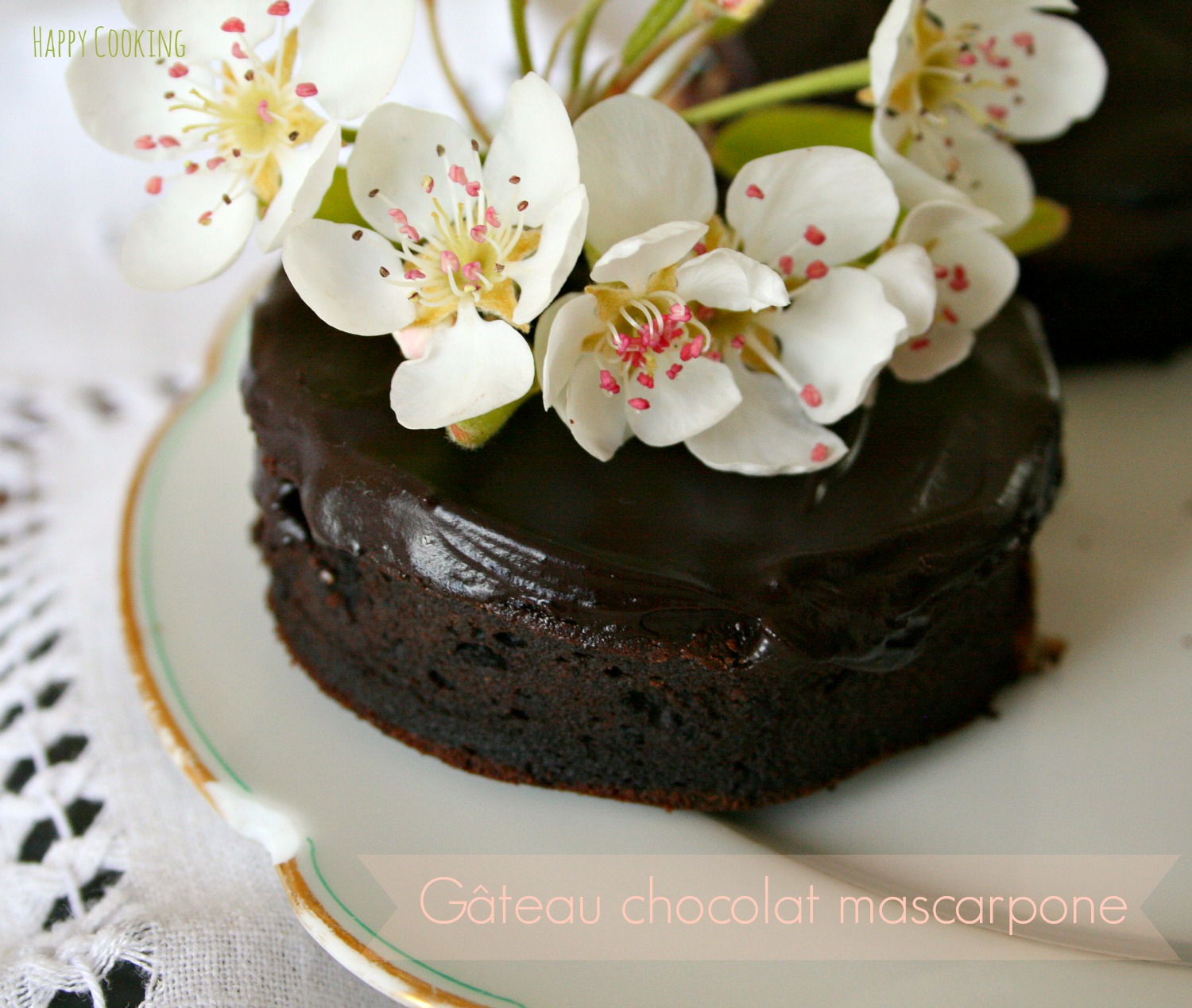 je ne fais pas souvent de gâteau au chocolat, mais là j’ai été tentée de venir voir celui ci : d’abord par la photo attirante et fleurie et ensuite par la recette !