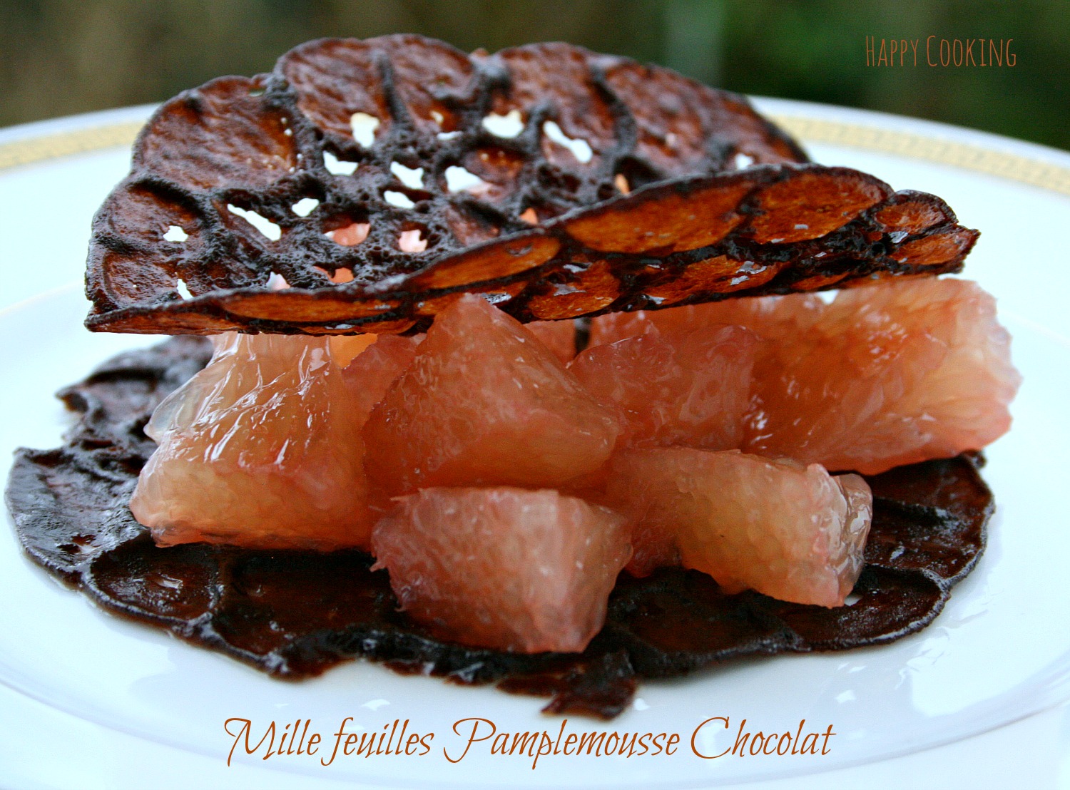 Mille feuilles pamplemousse tuiles au chocolat
