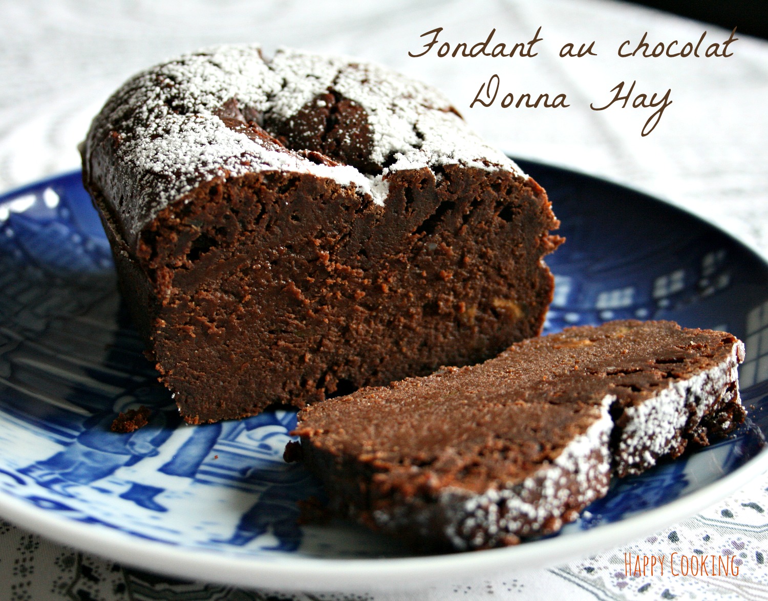 Au fil de mes lectures culinaires, je poursuis ma quête du « meilleur gâteau au chocolat du monde ». J’ai beau vouloir innover, les enfants me réclament toujours « juste un gâteau au chocolat ». Ce qui fait la différence ici, c’est la cuisson au bain-marie à basse température, qui donne une texture très fondante. C’est Fiston, toujours très gastronome, qui a le mieux résumé: « Ya plusieurs couches, une croûte à l’extérieur et du plus moelleux dedans ».Fondant au chocolat donna Hay