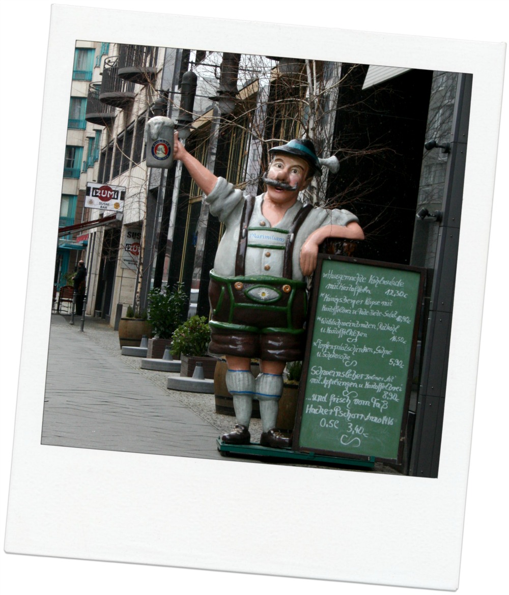 Spécialités locales… ou presque: peu au fait de la gastronomie locale, un restaurant bavarois m’a tenu lieu d’expérience de la cuisine allemande. Les puristes ne manqueront pas de venir m’expliquer ce qu’est la véritable cuisine berlinoise. A part le currywurst (saucisse au curry) qui ne m’a pas tenté, je n’ai pas trouvé !.