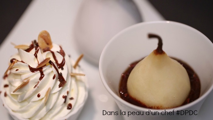 Voilà pour la présentation du chef Michalak, pour une version plus light, c’est la poire pochée que j’ai recouvert de chantilly dans ma version.poire-belle-helene-revisiteeDPDC_masterclass_20150212_1423237202