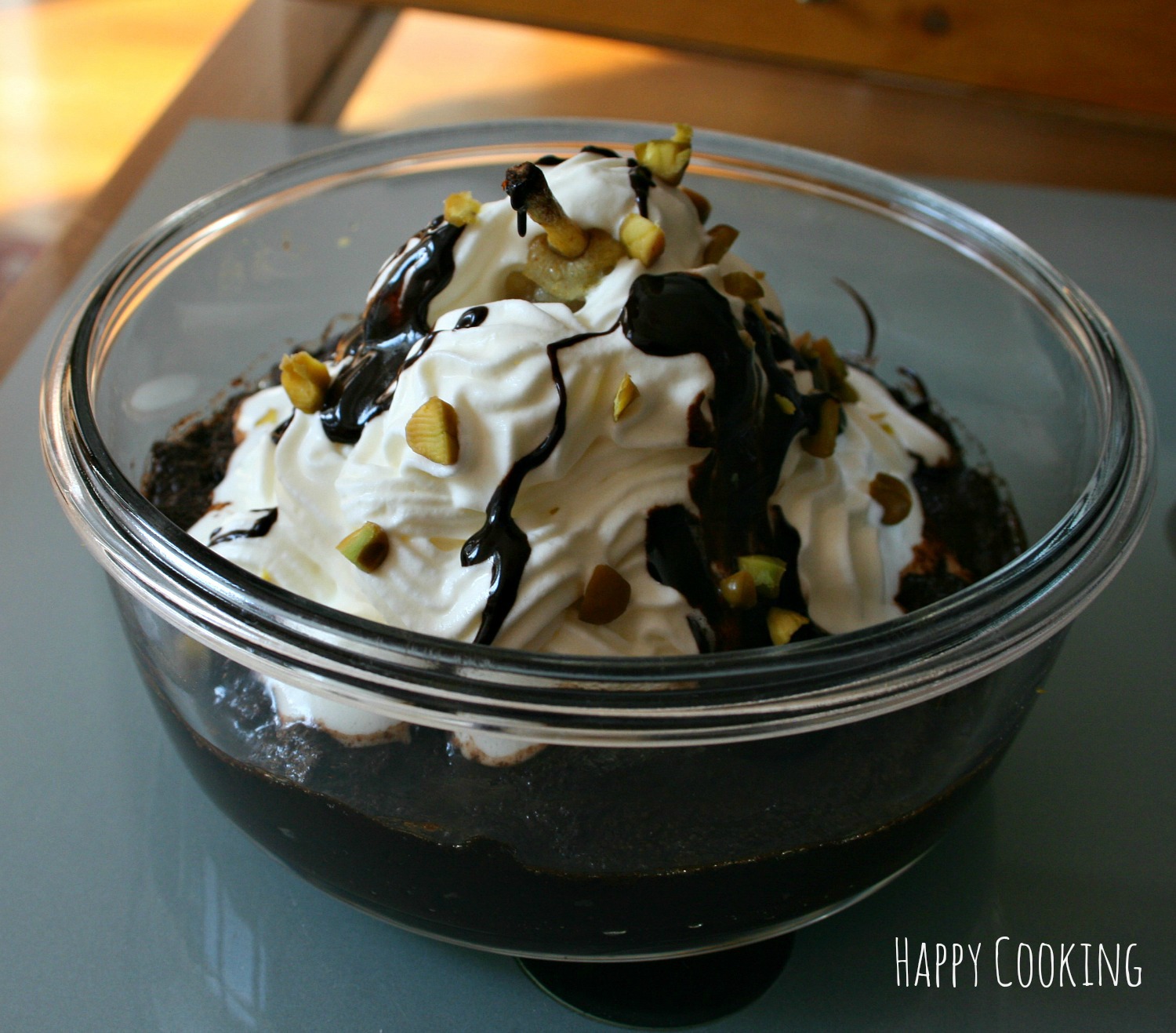 Verser la sauce chocolat en petite jatte.