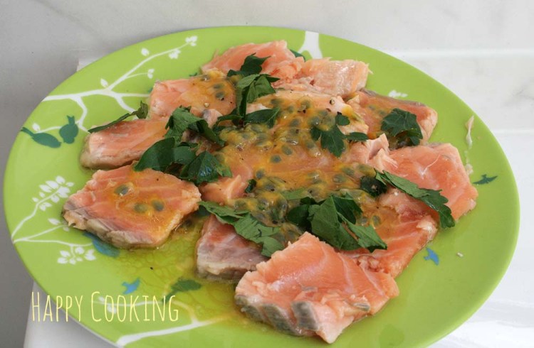 Saumon mi-cuit vinaigrette aux fruits de la passion