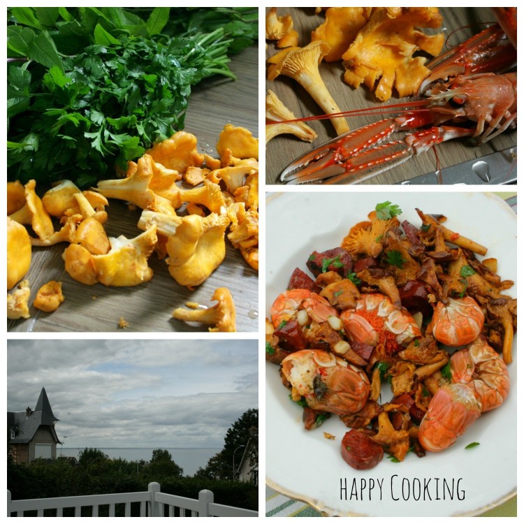 C’est un week-end de rentrée qui prolonge l’été, avec le soleil et la mer en toile de fond . Un week-end heureux comme un déjeuner en terrasse et léger comme une poêlée de champignons . Un plat tout simple,  qui marie girolles et langoustines fraiches, les plaisirs de la mer et les saveurs de la terre.