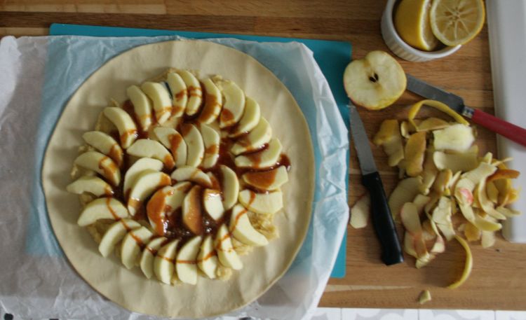 Cette année la galette des rois a rencontré la tarte tatin et le résultat est magnifique. De la crème d’amandes, des pommes et un soupçon de caramel. Pas besoin d’avoir la fève pour être comme un roi !