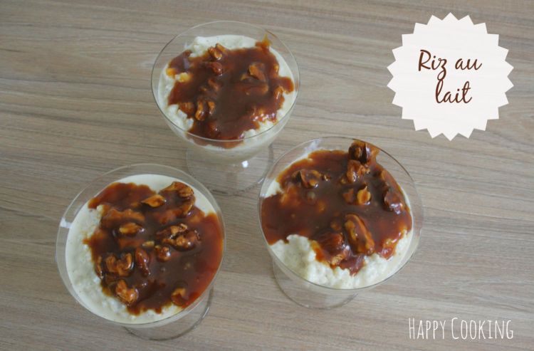 Ingrédients: pour 4/5 pers., 1 litre de lait (1/2 écrémé), 1 càs de crème fraiche épaisse, 150 gr de riz rond, 1 gousse de vanille, 50 gr de sucre, 1 soupçon de rhum brun (facultatif). Caramel: 60 gr de sucre, 50 gr de crème fraiche liquide, 1 pincée de sel, 1 poignée de fruits secs(cerneaux de noix, pistaches, amandes effilées…)